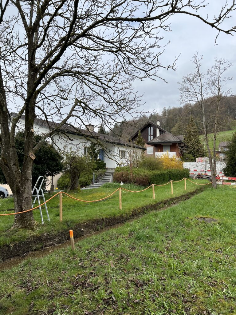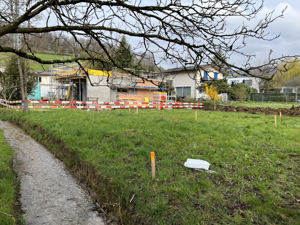 Nachdem diese Arbeit erledigt war, haben wir gemeinsam mit unserem Architekten Philipp Tännler einen kurzen Rundgang über das zukünftige Baugrundstück gemacht. Dabei haben wir uns noch einmal einen genauen Überblick über die Planung verschafft und konnten erste Vorstellungen entwickeln, wie unser Traumhaus einmal aussehen wird.