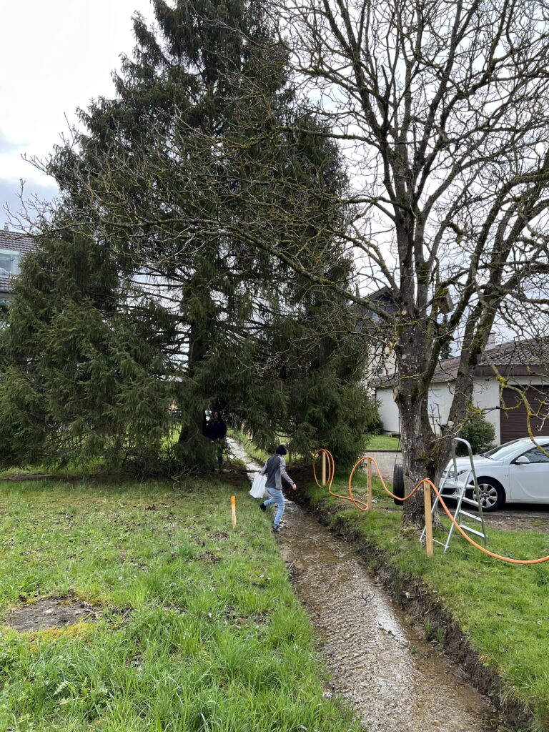Um einen reibungslosen Ablauf auf der Baustelle zu gewährleisten, haben wir zunächst einige Äste des Nussbaums entfernt, um Platz für die LKWs zu schaffen, die in den nächsten Tagen anrollen werden. So können wir sicherstellen, dass der Baum unbeschadet bleibt und auch weiterhin unseren Garten verschönert.