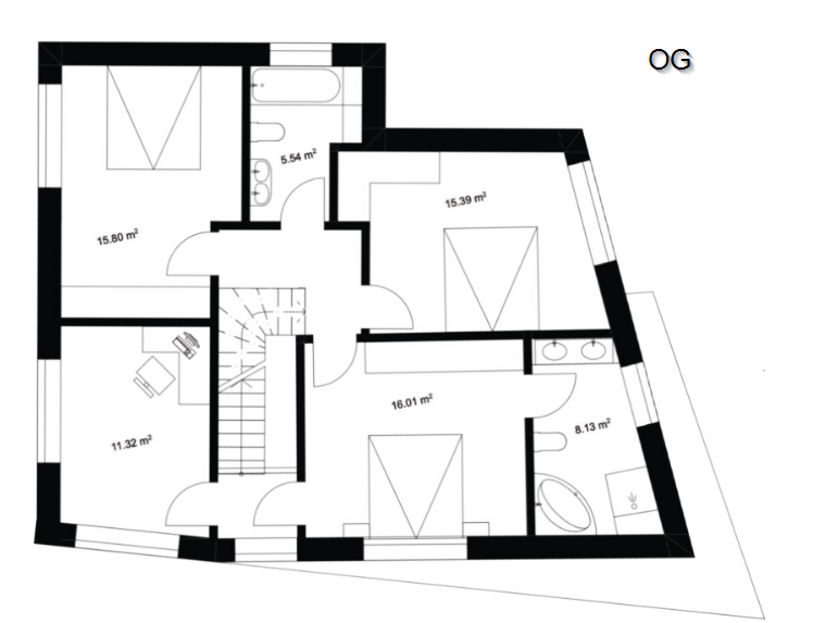 Im OG müssen die beiden Räume aus dem dritten Stock zurück in den zweiten, und überhaupt kann die Raum Nutzung optimiert werden indem der Korridor verkleinert wird.