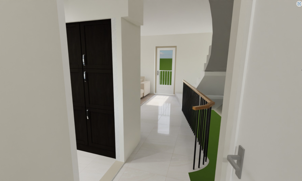 Im April ging es tiefer in die Details. Mit Verschiebungen der Zimmer sollen die Räume praktikabler angelegt, Korridore verkleinert und Platzverschwendungen reduziert werden. Davon betroffen ist auch die Miniatur-Galerie im OG bei welcher zwei Türen durchquert werden mussten um vom Schlafzimmer ins Büro zu gelangen. Diese Galerie war eigentlich nie praktikabel, aber irgendwie lustig.