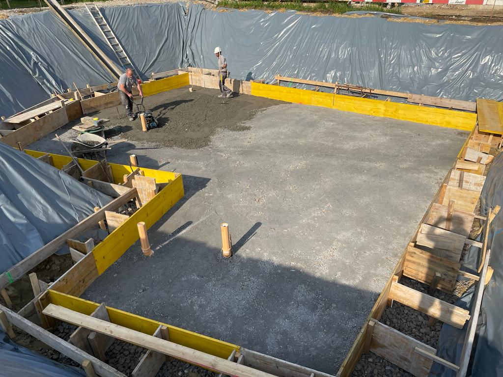Es ist soweit, das erste effektive Haus-Element wird gebaut. Dabei handelt es sich, wie könnte es anders sein, um den Kellerboden.