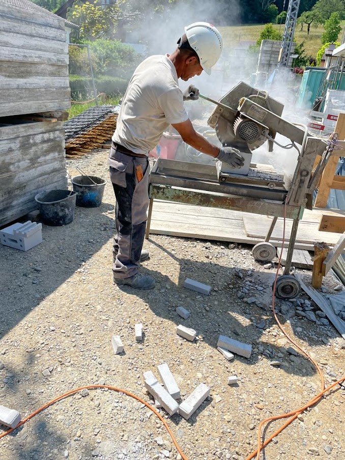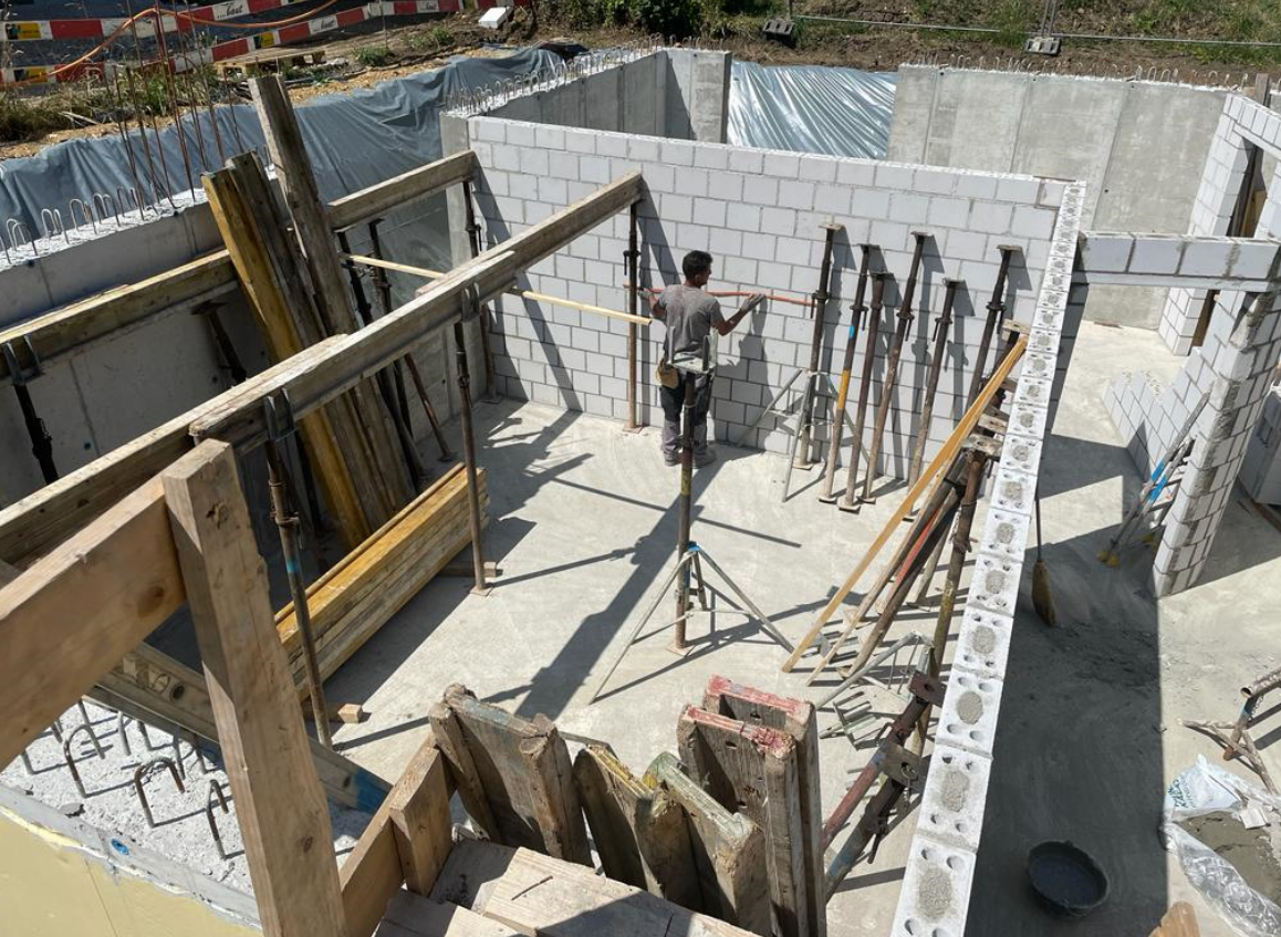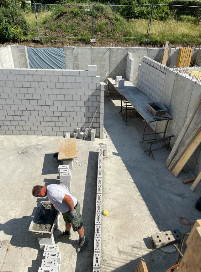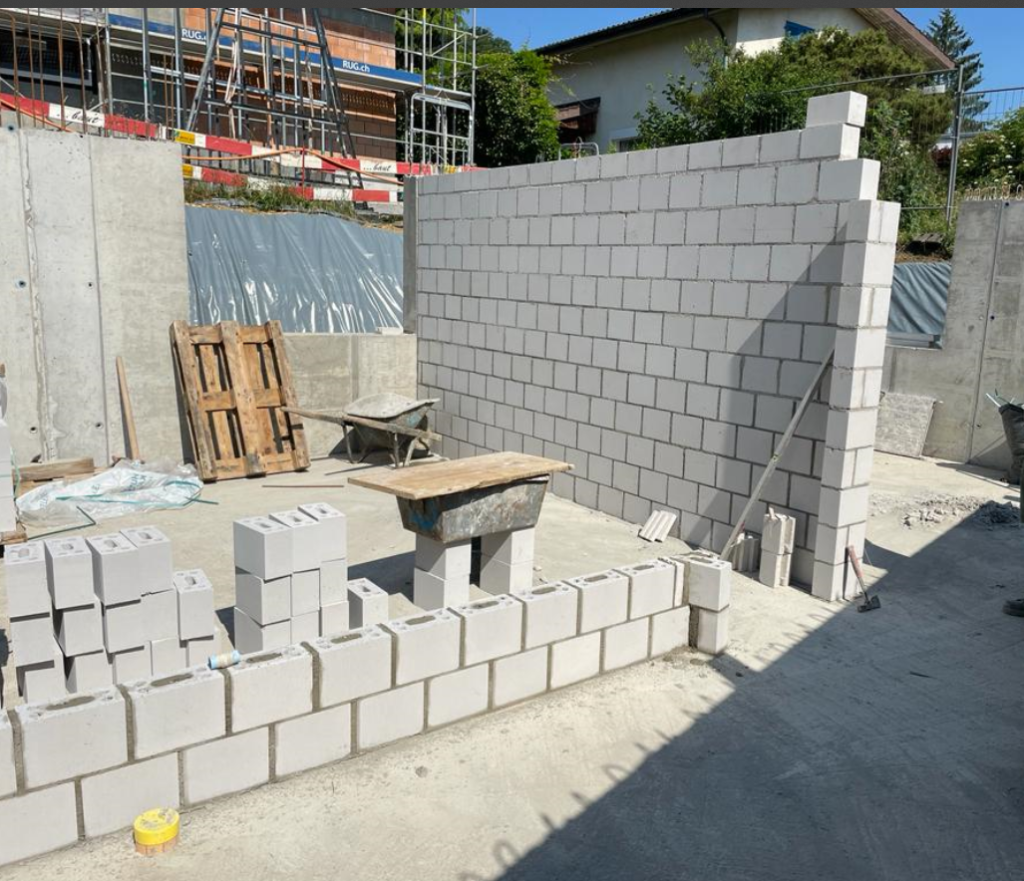 Die Wände sind fertig betoniert und die Kalksandsteine um die Innenwände zu erstellen wurden geliefert. Die Arbeit kann los gehen. An die Spachtel Bob!